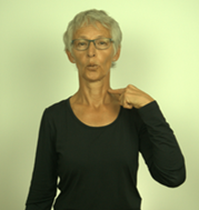 A small, special category of mouth gestures concerns mouth gestures that occur on their own, without a manual component โ and which could therefore be analyzed as non-manual lexemes, rather than sublexical elements. I am aware of two instances, which, strikingly, involve the same mouth gesture, but with two different meanings: cheat and menstrual_period. This mouth gesture โ the tongue pushing against the inside of one of the cheeks (see Figure 2.35) โ clearly is used to convey information that should be less visible to bystanders.